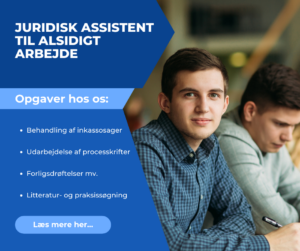 Vi har kontor på Esplanaden 26, København K, og søger en juridisk assistent til varetagelse af alsidigt arbejde. Efter oplæring